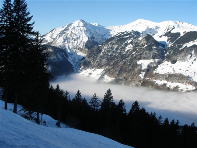 Nebel über Lungern, darüber das Wylerhorn