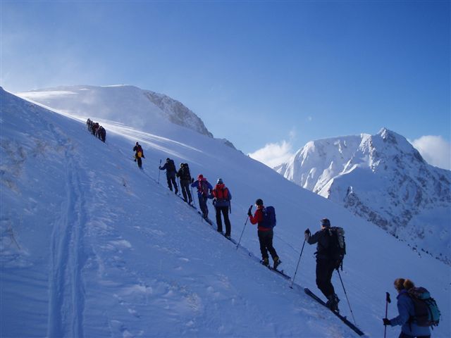 Eine lange Kolonne, kurz vor dem Gipfel