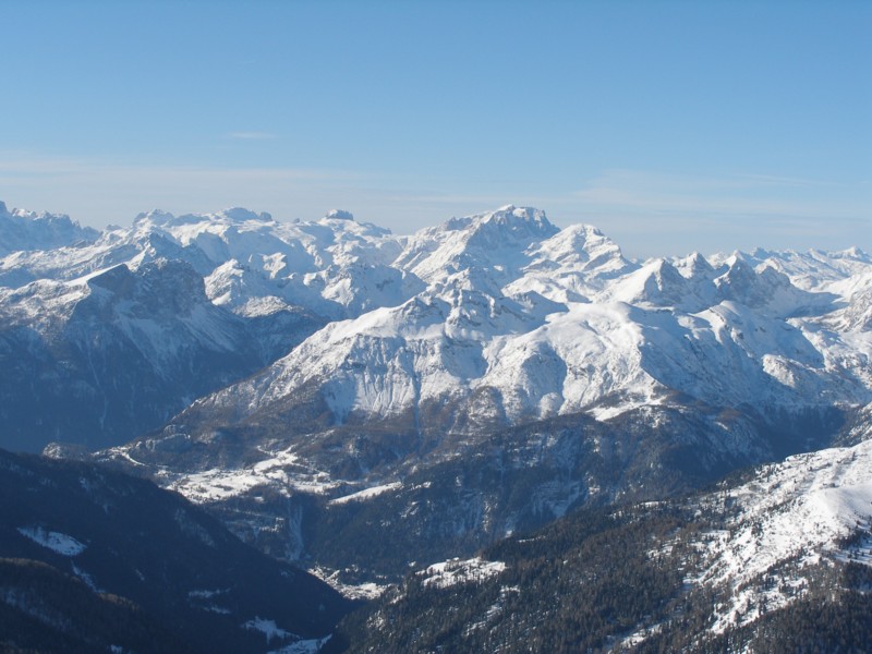 Blick von der Terrasse der Lagazuoihütte: Pale di San Martino