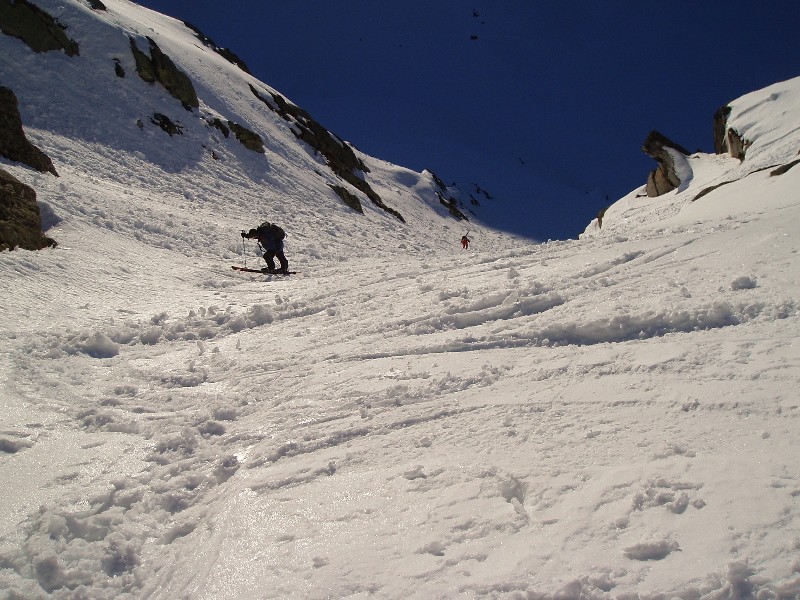 das untere Couloir mit viel Lawinenschnee