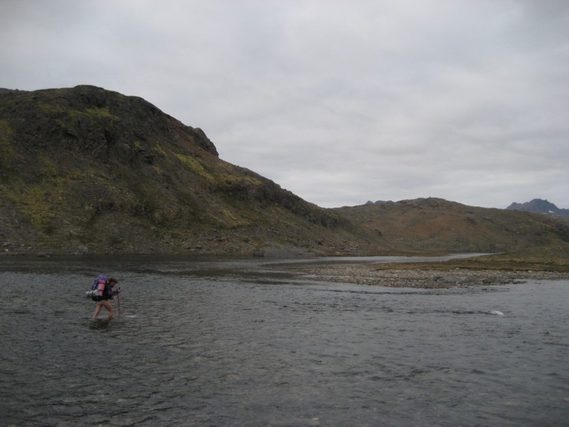 den Fluss Quorlortoq nach 2 km Umweg furten