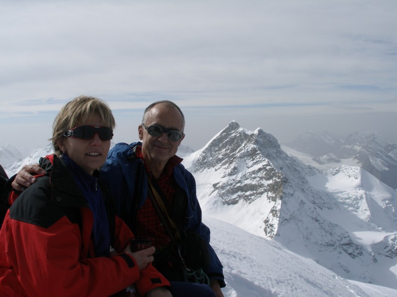 auf dem Gipfel, im Hintergrund die Jungfrau