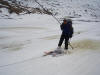 Da die erste Bahn erst um 8h fährt, beschliessen wir, mal die "faule" Variante auszuprobieren: Gewinnen von Höhenmetern mit dem Dossenlift! Dieser fahre erst um 8h30, wird uns beschieden. Also noch rasch eine Ovo in der Beiz - aber ohalätz, die Beiz hat zu. Also zum Dossenlift - aber ohalätz, der fährt erst um 9h. Somit sind wir recht spät dran, aber es reicht doch noch für eine gute Pause auf dem Gipfel und der Schnee ist noch genial sulzig bis zur Piste hinunter.
