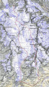 Galenstock, vom Furkapass über den Südostsporn auf den gwächtigen Gipfel, nordseitig runter zur oberen Triftlimi, mühsamer Schnee auf dem Gletscher, man sinkt ein, Spalten sind nicht sichtbar. Die Hütte endlich in Sichtweite, sehr nahe, das GPS zeigt etwa 800 m. Aber ohalätz, da geht es noch tief runter und wieder rauf. Um die Hütte herum tobt ein gewaltiger Föhnsturm und er hört die ganze Nacht nicht auf. Schnarchler sind leise im Vergleich zu diesen Föhnsturm ... Am nächsten Tag zurück. Eigentlich über den Tieralplistock, aber dieser ist die ganze Zeit in den Wolken. So weichen wir auf den Limistock aus. Der Bergschrund erheischt Kriechen am Berg. Rhonegletscher. Der Weg zurück führt uns zurück zum Belvédère, von wo wir auf den oberen Weg aufsteigen. Wir kommen an einer Art Tempel vorbei (wir denken zuerst an einen Mormonentempel), aber es ist wohl eine Festung der CH-Armee, ein Hinweis darauf, wohin unsere Steuergelder fliessen. |