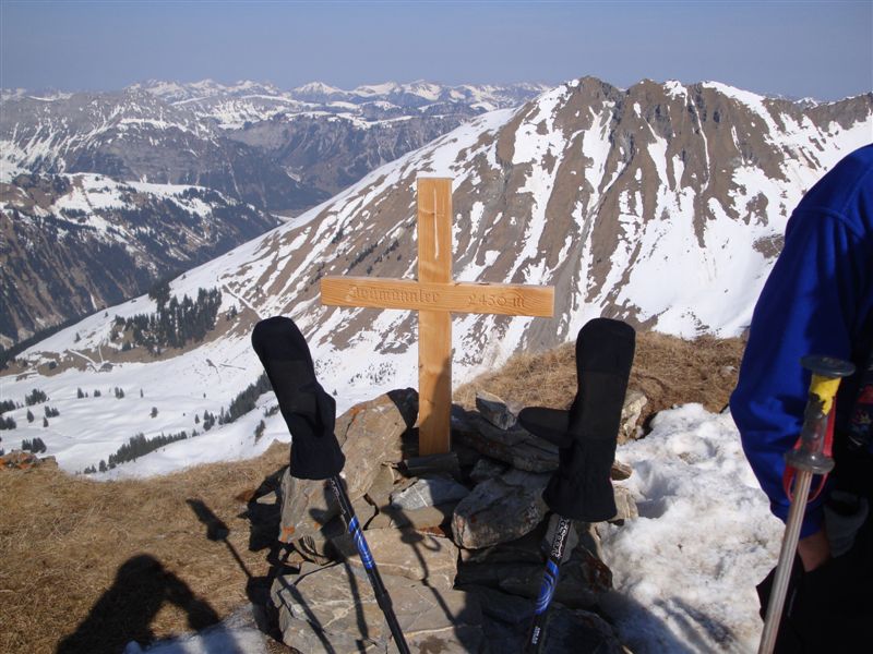 das Gipfelkreuz, im Hintergrund die Galmschibe, nicht mehr so weiss wie auch schon