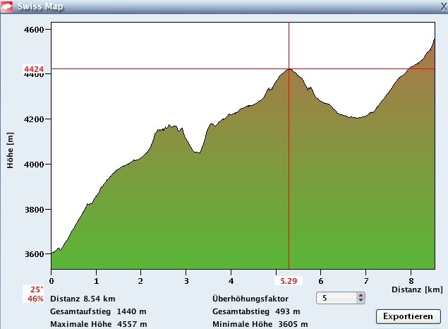 unser Profil, auf der Zumsteinspitze hat das GPS den Geist aufgegeben